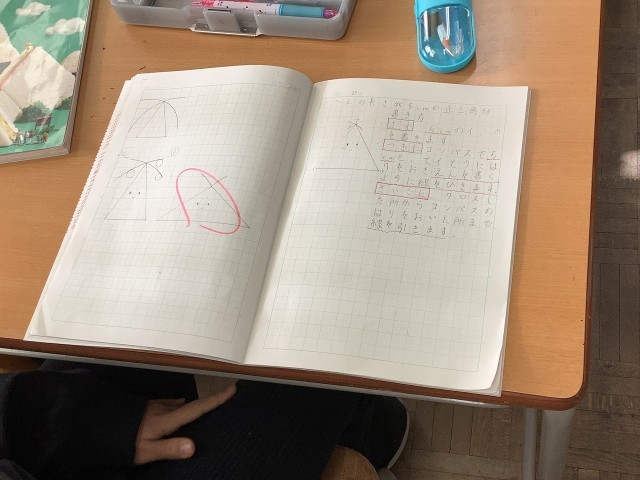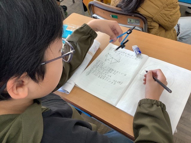 定規やコンパスといった道具を正しく使い、丁寧に作図をしていきます。
