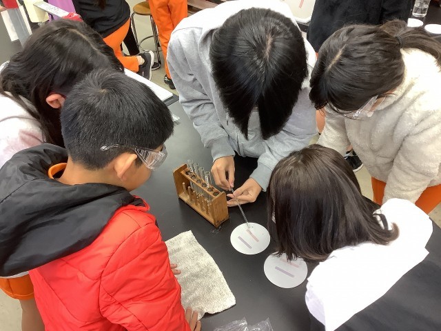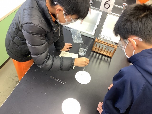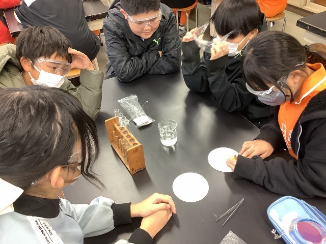 実験を行う上での留意点ややり方の説明をよく聞いてグループで協力しながら実験を進めていました。