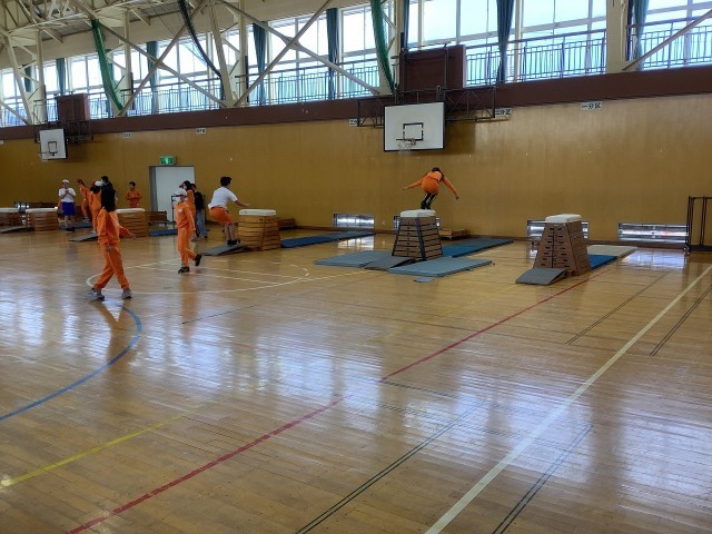 高学年ともなると抱え込み跳びやハンドスプリングなど、技の難易度も上がっています。