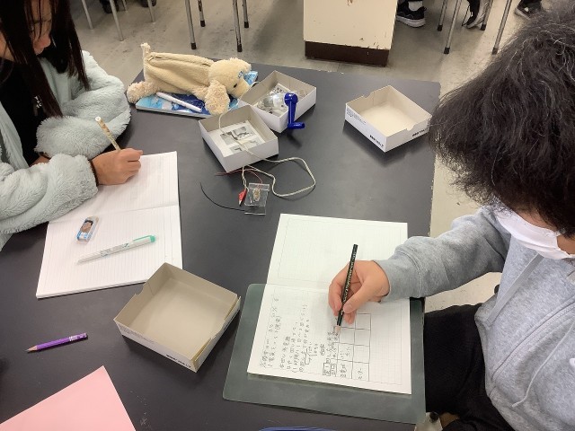 回し方の違い(速さ、手回しの回転の向き)をよく観察している姿もありました。
