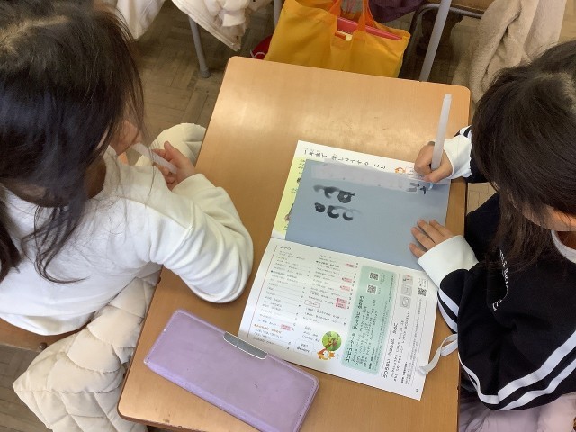 今日は鉛筆ではなく、筆を使って学習をしました。