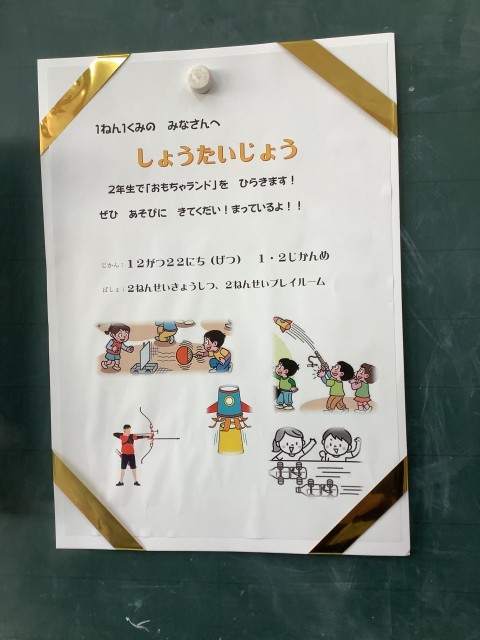 前にも紹介した2年生のおもちゃランドへの招待状です。