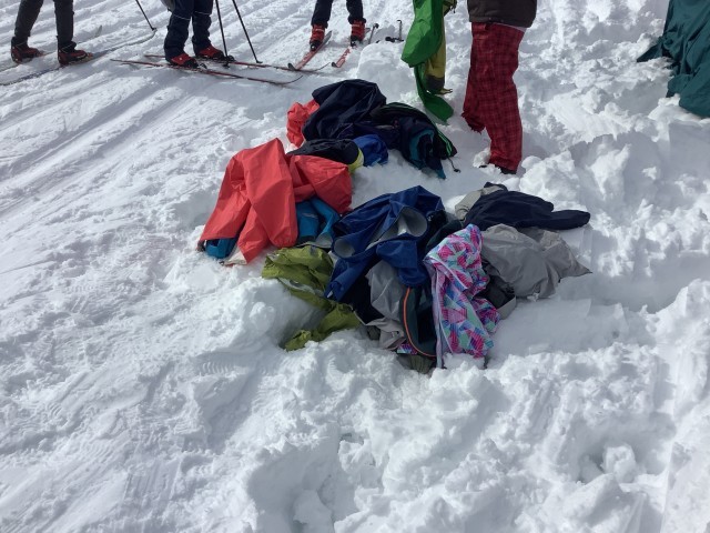 ふと足元に目を落とすと、ウェアの山・・・。頑張っているうちに暑くなったのでしょう。