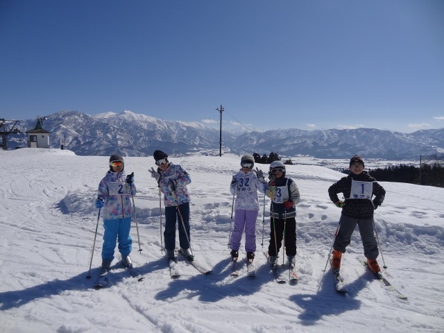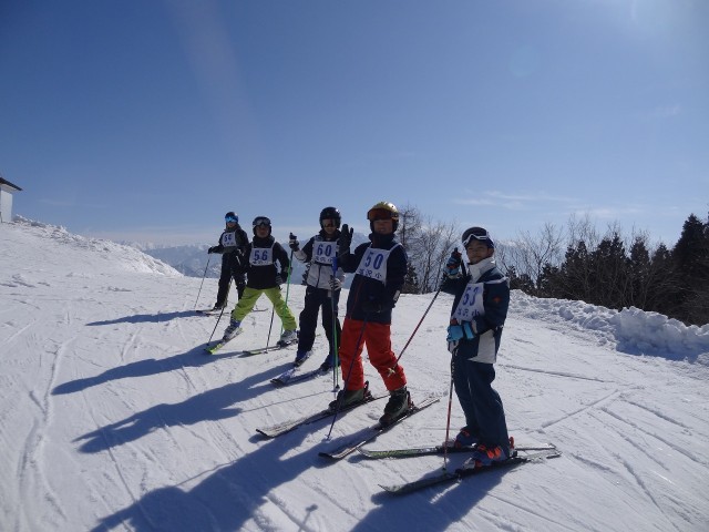 雪が輝く美しいゲレンデで高学年のアルペンスキー教室が行われました。