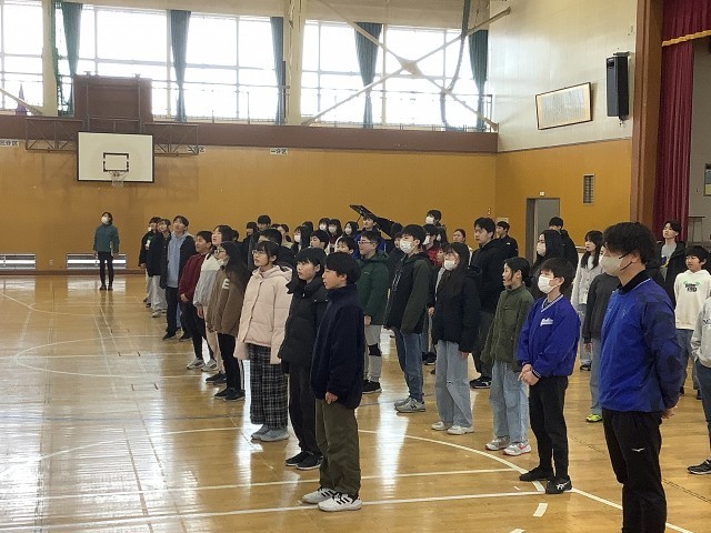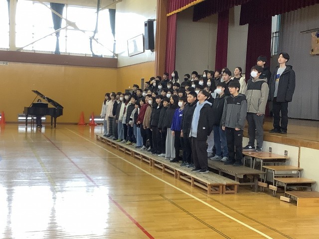 今日の音楽朝会は卒業式の式歌の一つ「校歌」です。