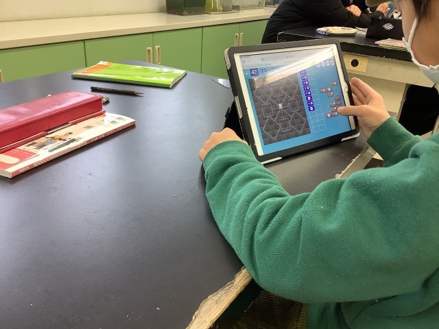 コンピュータに指示を出しながら、キャラクターを目標の位置まで動かす学習をしていました。