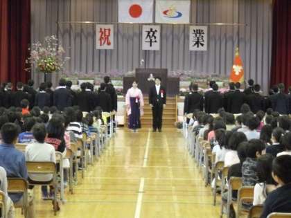 最後に会場全体で校歌を合唱し、卒業生の前途を祝しました。卒業生の凜々しい姿に、中学校でのますますの活躍を確信した、感動の卒業式となりました。