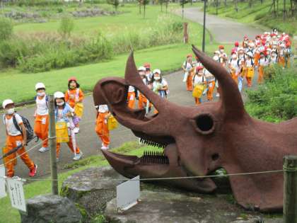 10月1日(木)に八色の森公園に行きました。雨予報でとても心配しましたが、小雨の中、秋さがしをしたり、遊具で遊んだりしているうちに、だんだん晴れてきました。バッタやトンボを追いかけ、小川をのぞけばメダカを見つけ、楽しい1日となりました。家族に作っていただいたおいしいお弁当を食べているうちに、太陽も顔を出しました。