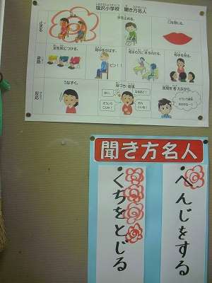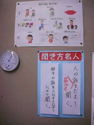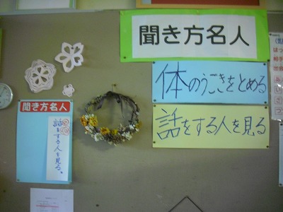 各クラスで頑張ること 公開日 2022/06/09 更新日 2022/06/09 できごと 1年間を通じて、各クラスで頑張ること。「聞き方名人」になることです。「人の話を最後まで聞く」「話をする人を見る」など、各クラスで聞き方名人を目指します。