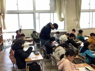 今日は塩プリ初日です。どの学級の子どもたちも開始時間までに自分の席に座り、真剣に取り組んでいました。分からない所は挙手をし、担任に聞いている子どもの姿も見られました。