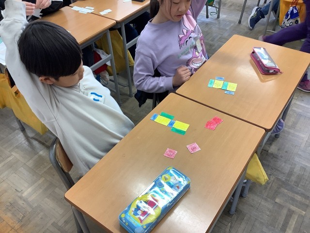 隣の子と相談して同じ展開図を一緒に考えるペア、それぞれ違う展開図を考えるペアとさまざまです。