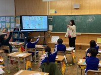 2月17日(火)の2時間目、1,2年生が国際理解教育をしていました。まずは、4人...