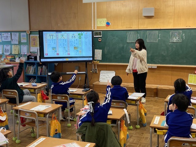 2月17日(火)の3時間目、1年生が国際理解教育をしていました。1時間目に練習し...