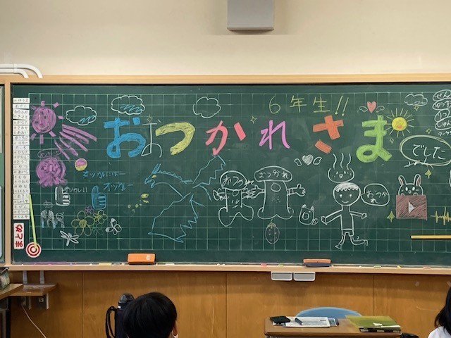 6年生が教室に帰ってきたら、黒板にメッセージがありました。温かいですね。