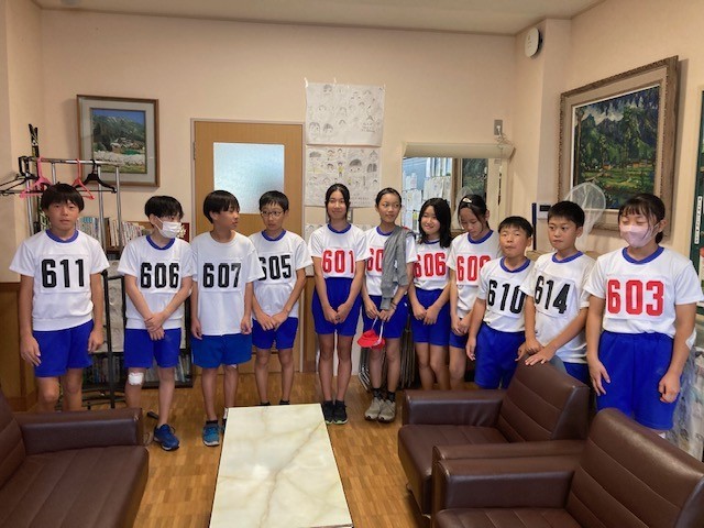 また、リレーメンバーが校長室に挨拶にきてくれました。