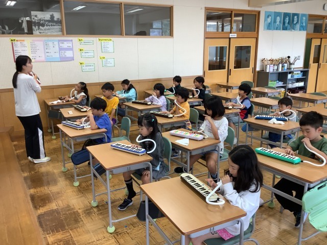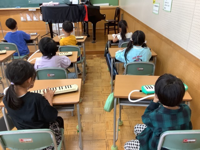 鍵盤ハーモニカです。学習発表会の練習ですね。
