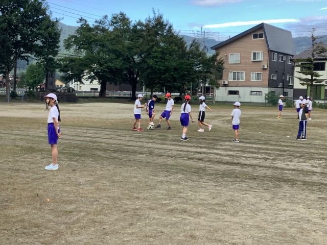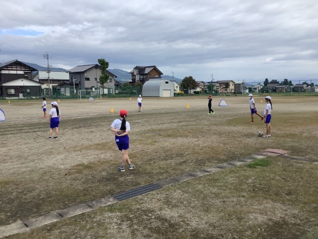 最初はチームごとにパスの練習をしてから、次にミニゲームをしていました。
