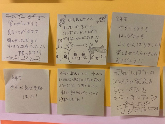 発表会の感想を保護者の方々、地域の方々から書いていただきました。