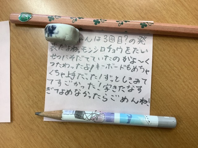 10月21日(火)の1時間目、6年生が学習発表会のふりかえりをしていました。