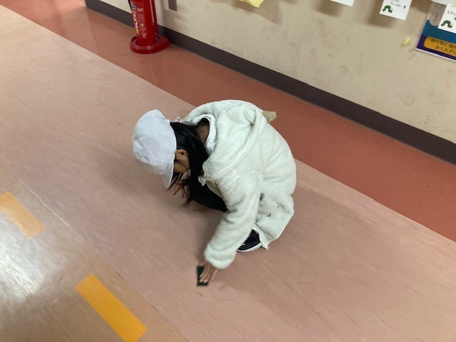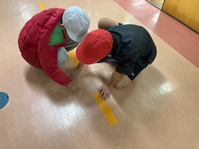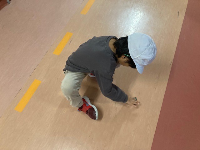 この黒いスジの正体は、中ばきの靴底の黒いゴムのソールがすれて、廊下にくっつくもののようです。