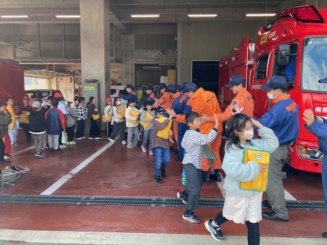 最後は、消防士さんたちとハイタッチでお別れしました。