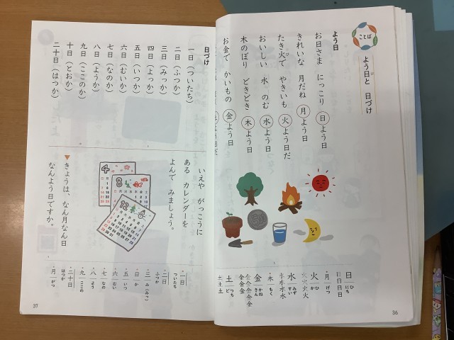 1週間の曜日の漢字を学んでいました。