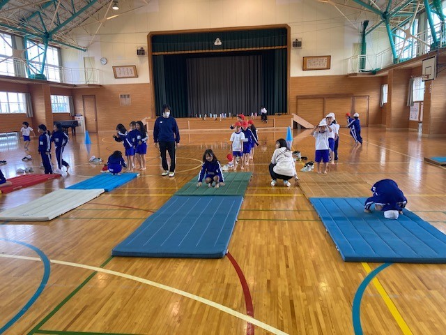 10月31日(金)の2時間目、1,2年生が体育をしていました。