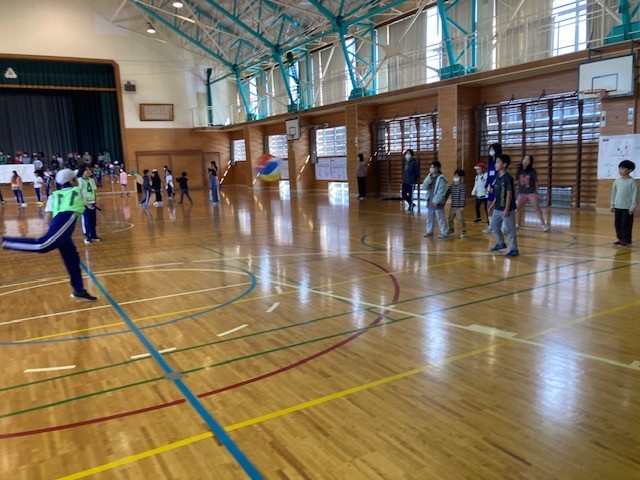 インフルエンザの流行で延期になっていた、縦割り班対抗ドッジボール大会が始まりました。