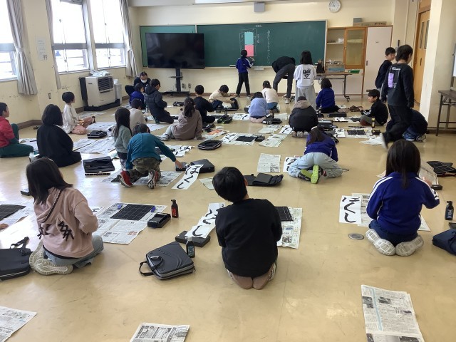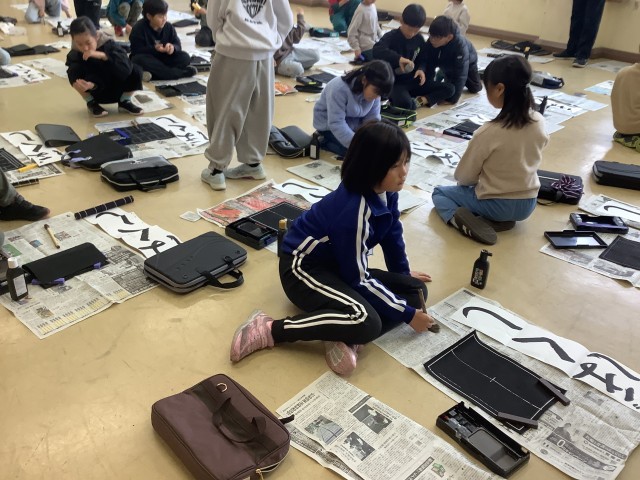 12月4日(木)の1時間目、3年生が書き初め練習をしていました。