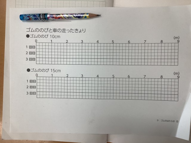 ゴムの力で学習でした。