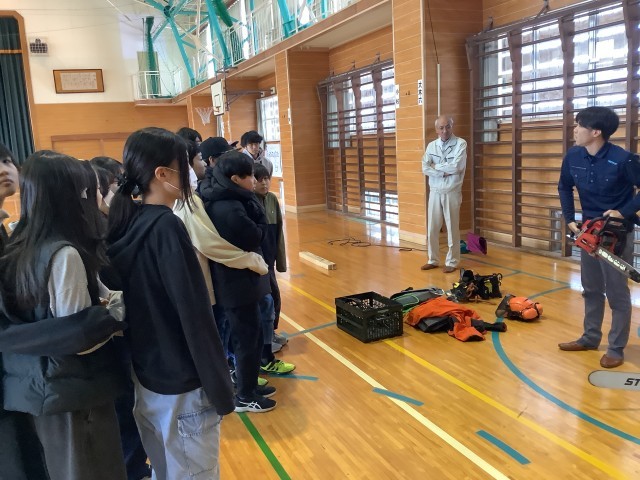 チェーンソーの体験をさせていただきました。