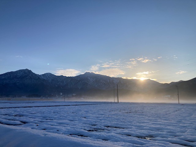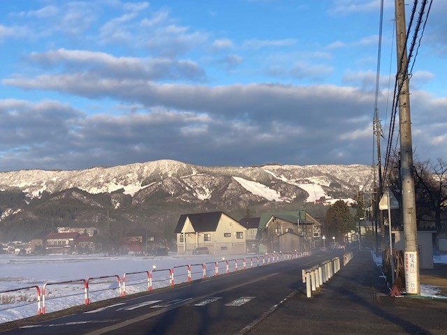 周囲を八海山、金城山、巻機山、飯士山に囲まれ、本当にきれいな朝の登校風景でした。