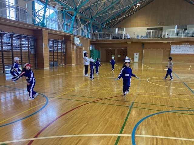いつもは2年生と一緒ですが、今日は1年生だけが体育をしています。