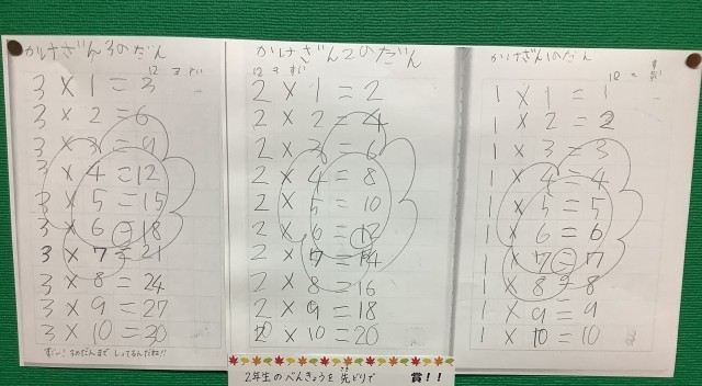 職員室前の廊下には、自主学習の紹介が掲示されています。