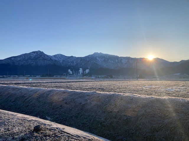 もうすぐ冬至です。この時期は柄沢山から太陽が出てくるのですね。