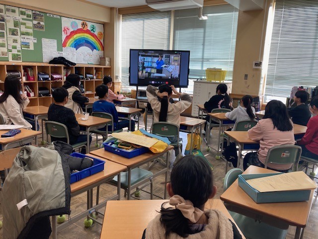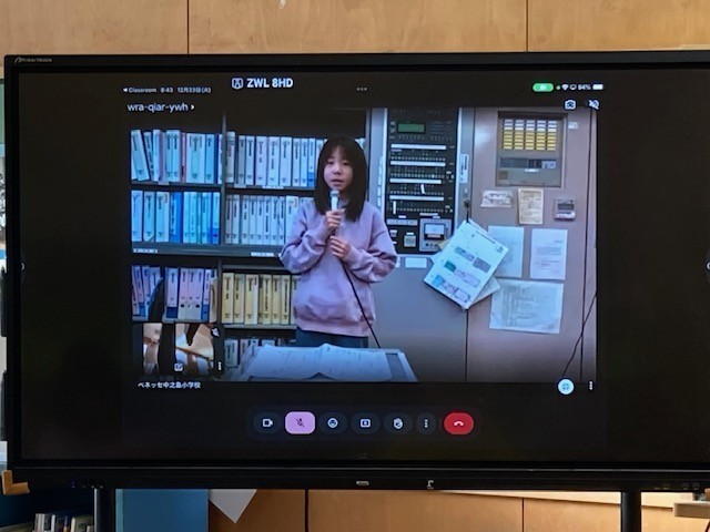 寒さ対策、感染症拡大防止のため、2学期の終業式はオンラインで行いました。