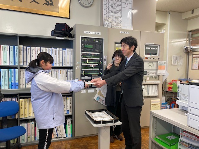 任命式では、3学期の学級委員長、副委員長、に任命書を渡しました。