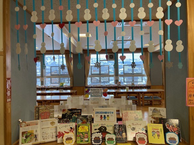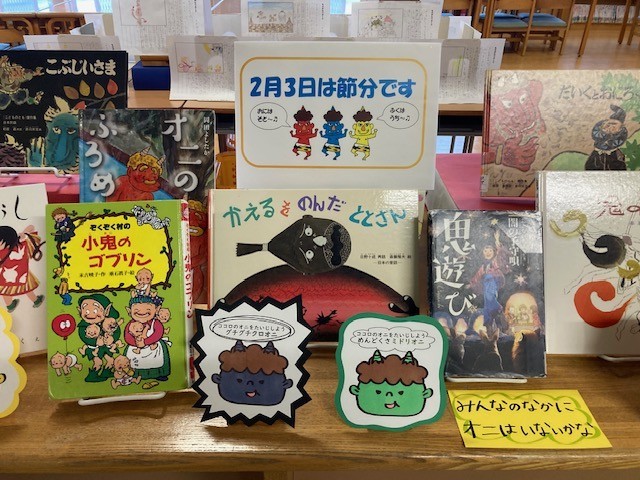 図書室の展示が、2月の節分モードに模様替えされました。