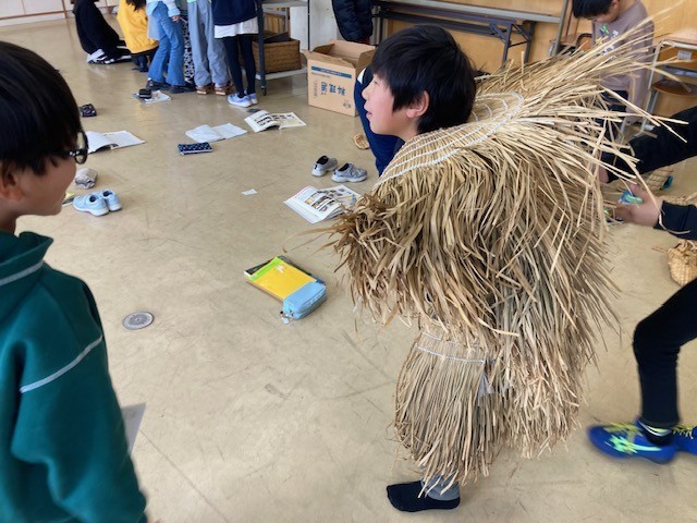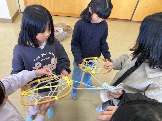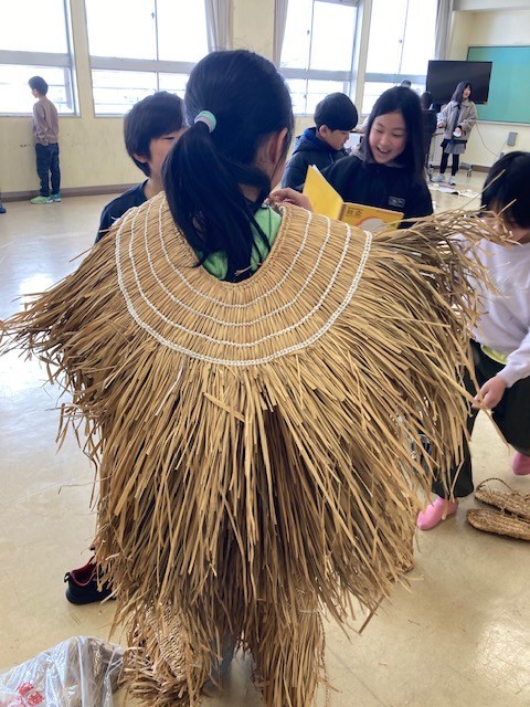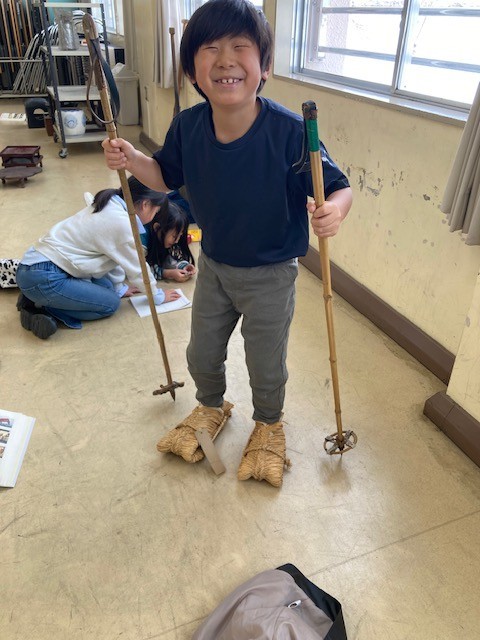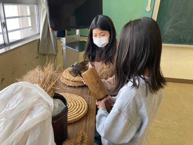 中之島小に寄贈していただいた昭和の道具を、実際に体験しました。