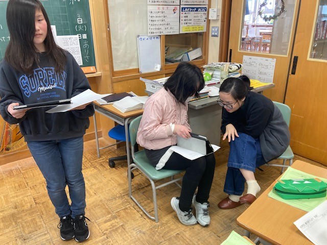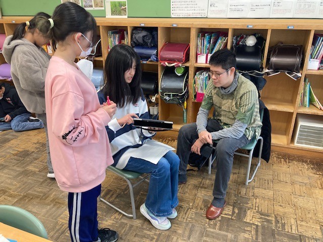 浦佐にある国際大学の方が4人、中之島小学校に来てくださいました。