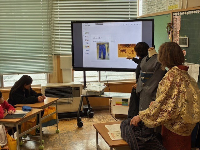 そこで、地域の着物の先生が和服の勉強を教えに来てくださいました。