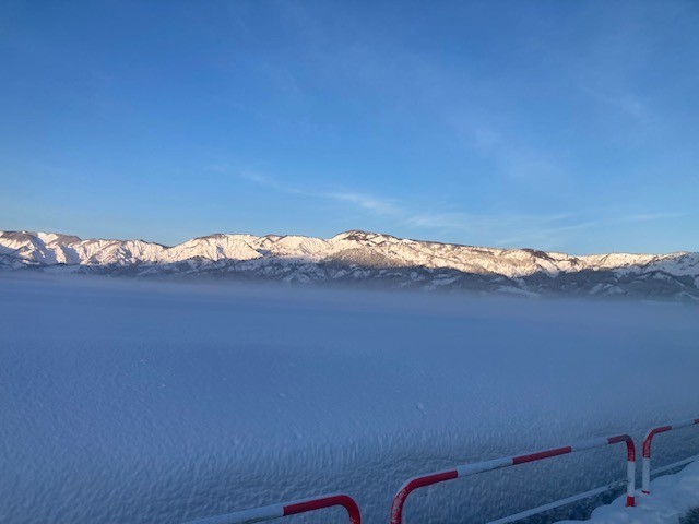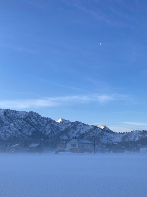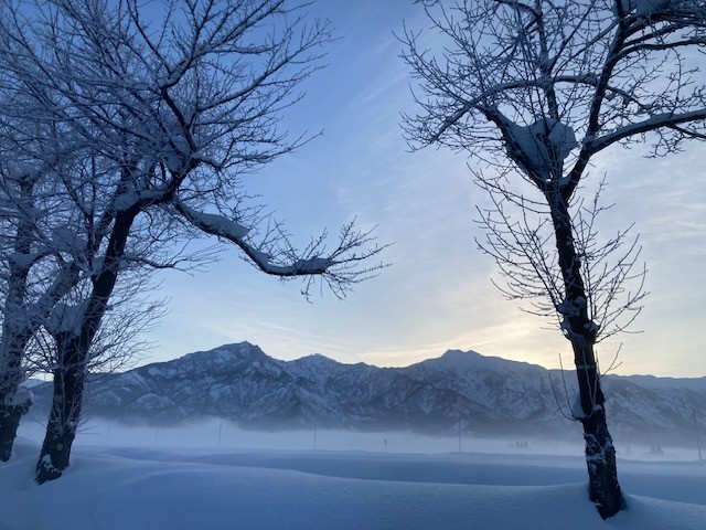 美しい里山、雪山に感謝して今日が始まります。