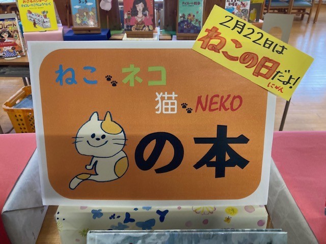 ネコの日? チョコレート? 図書室の展示です