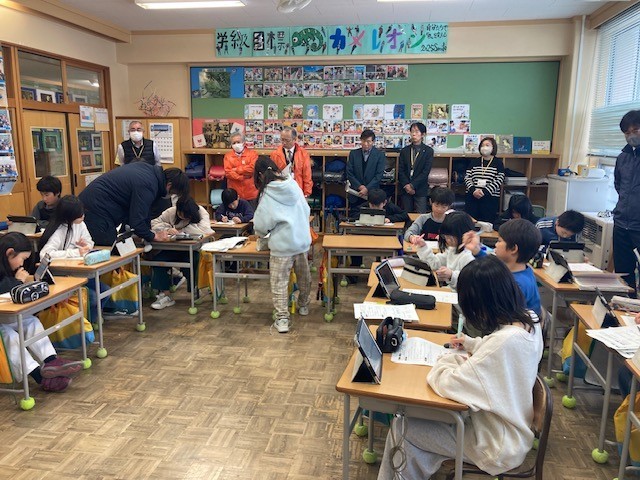 最初に全学級の授業を参観していただきました。