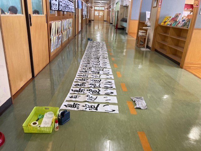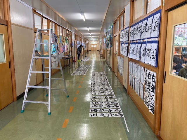校内書き初め展 展示作業