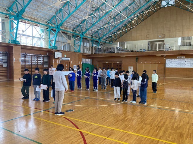 代表の児童が体育館に集まって、今日から練習が始まりました。