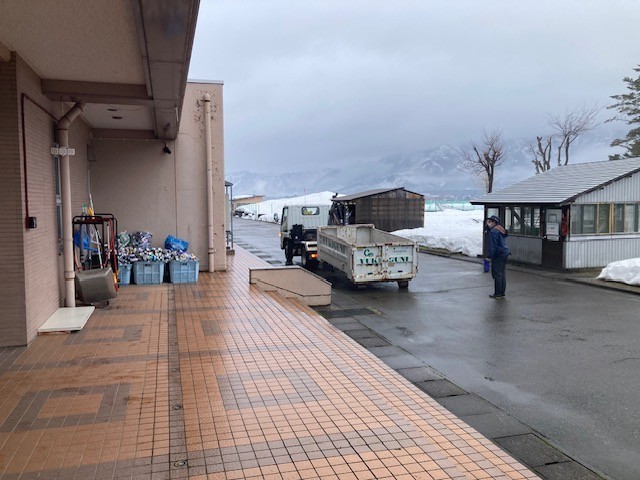 アルミ缶回収の業者の方々が、朝早くから働いていました。