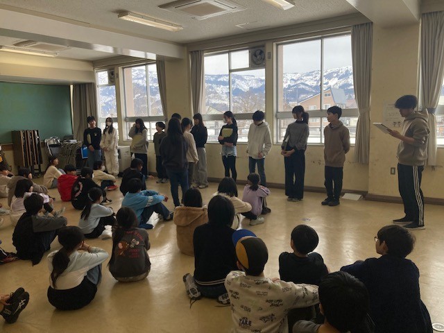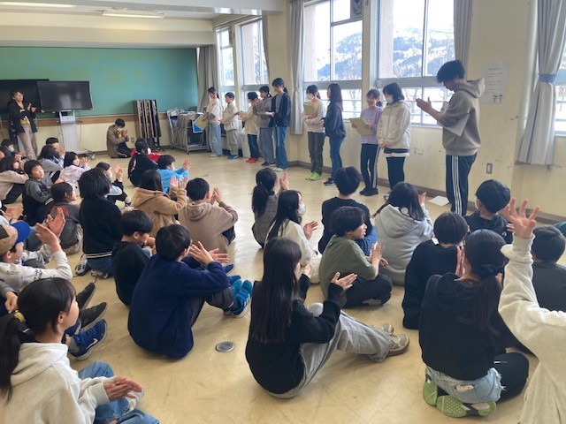 6年生から5年生にファイルが渡され、拍手がおきました。