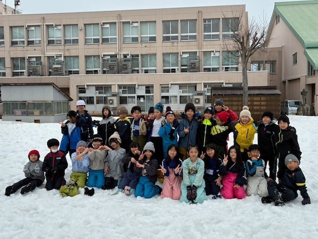 3年生が4時間目に雪遊びをしていました。