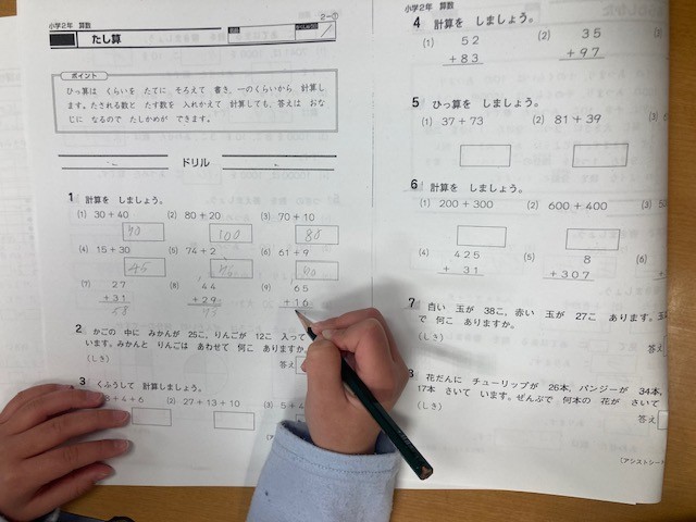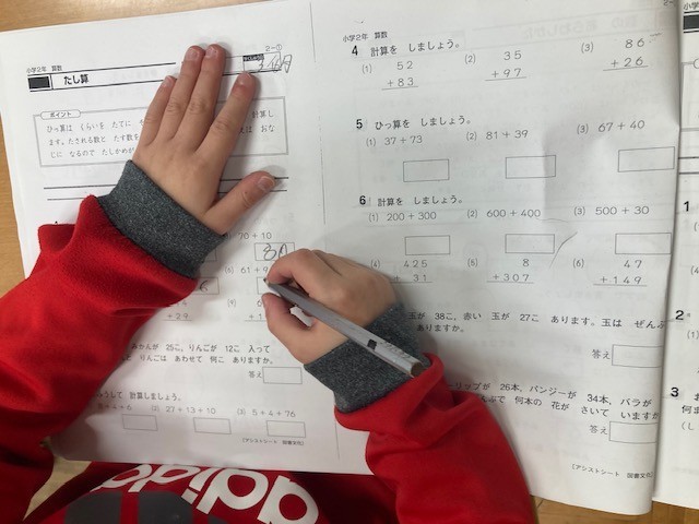 3月16日(月)の3時間目、2年生が算数の学習をしていました。
